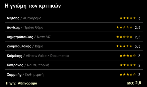 Διαβάστε ΕΔΩ τις κριτικές των ελληνικών ΜΜΕ για την ταινία (από το yourate.gr).