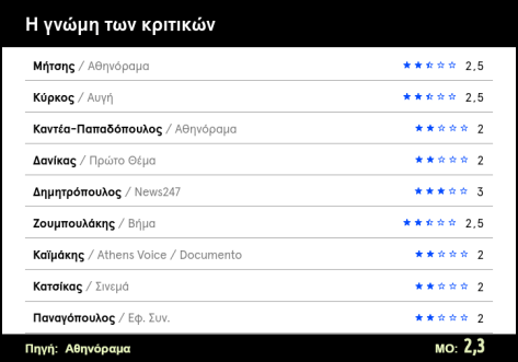 Διαβάστε ΕΔΩ τις κριτικές των ελληνικών ΜΜΕ για την ταινία (από το yourate.gr).